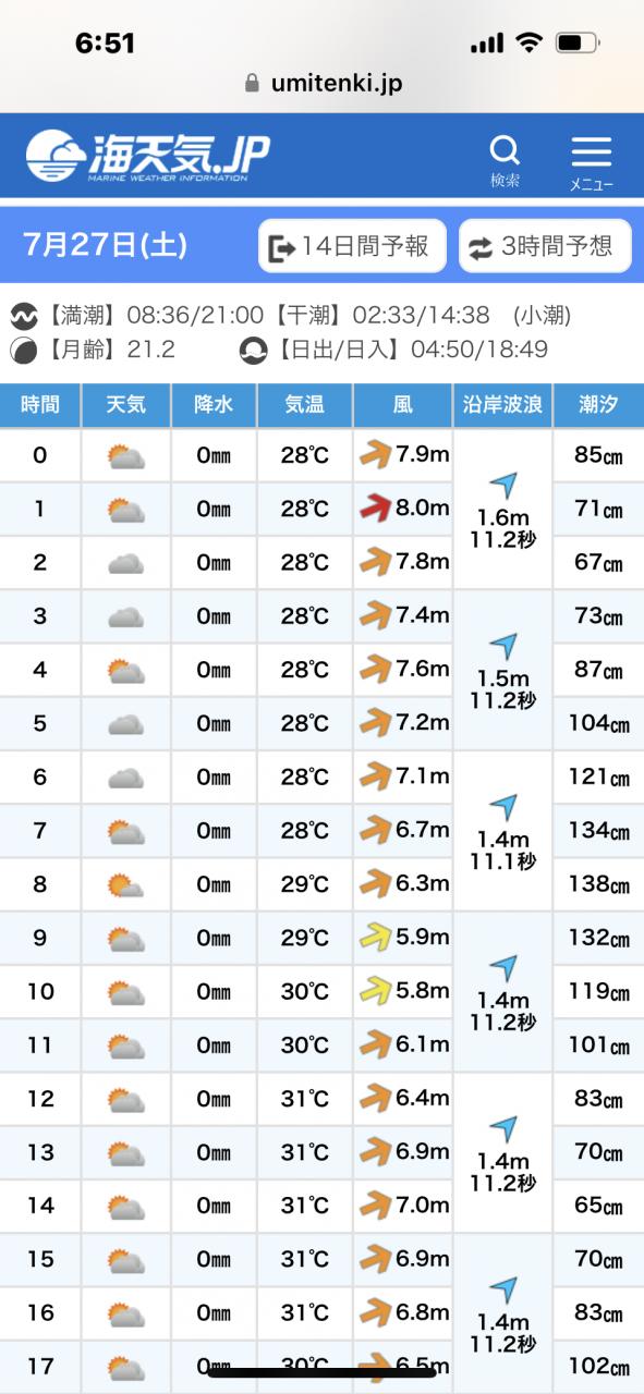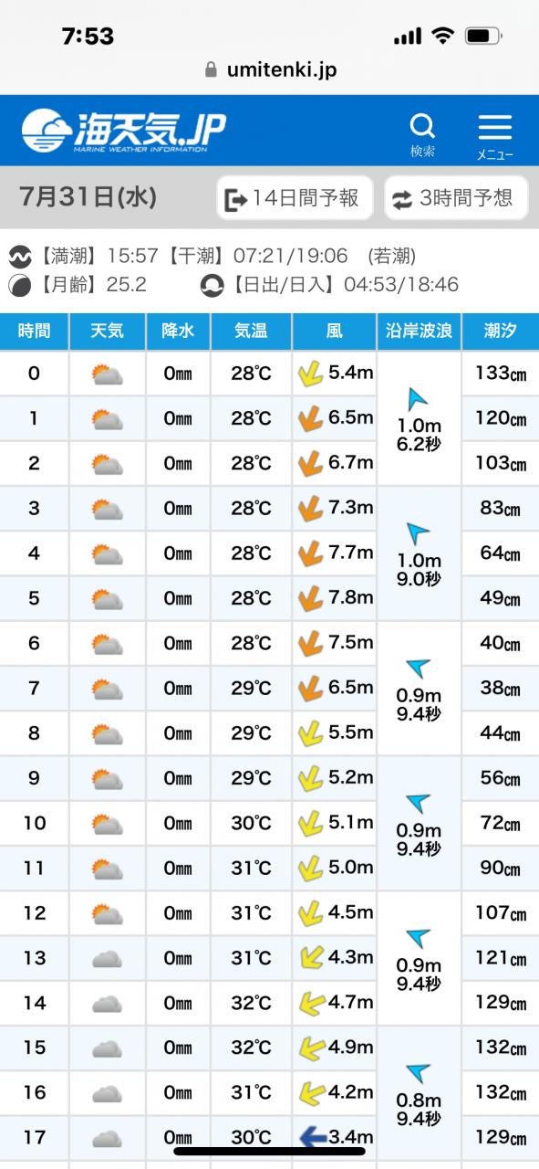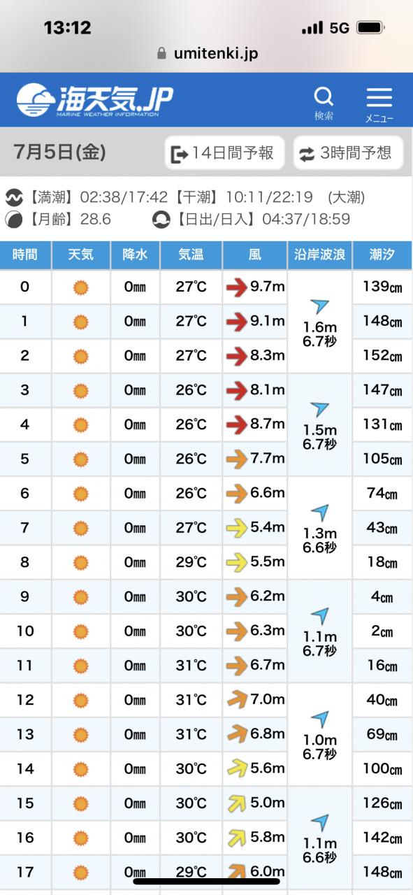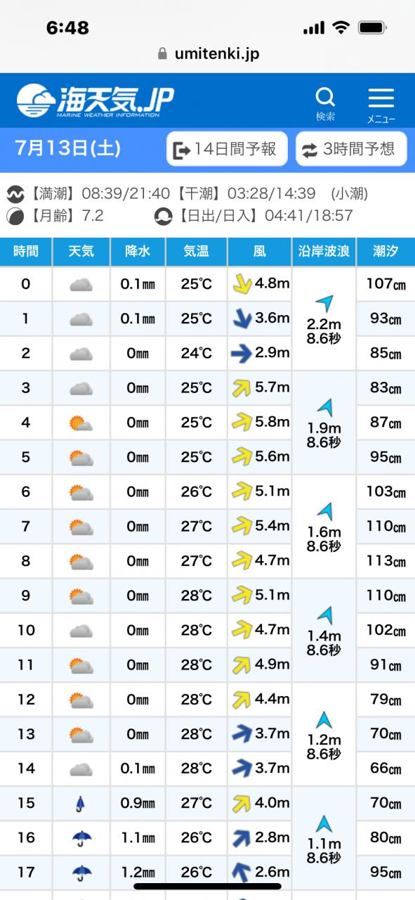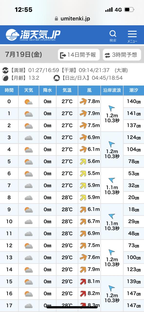 明日はベタ凪チャンスかな